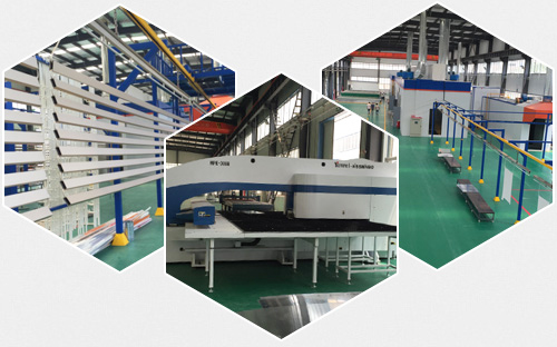 引进先进设备,多条先进生产线,数控转塔冲床、全自动开平线,生产效率高、性能稳定。